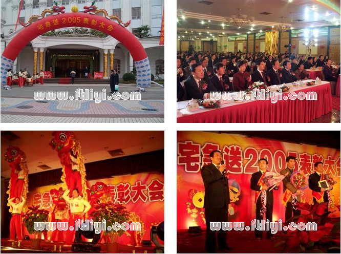 由飞天礼仪策划承办的“宅急送2005表彰大会”在番禺明珠酒店隆重举行,宅急送集团创办人陈平总裁亲临活动现场,深圳分公司副总经理、东莞分公司总经理、广州分公司总经理、华南基地总经理纷纷出席,主持人高超的串联、灯光师一流的灯光控制、演艺团队精彩的节目表演,令活动高潮迭起,盛况空前。创立于1994年1月18日的宅急送,经过十年的发展,业务遍布全国1000多个城市,目前有华北区、华东区、华南区、华西区四大区,近300家分支机构。